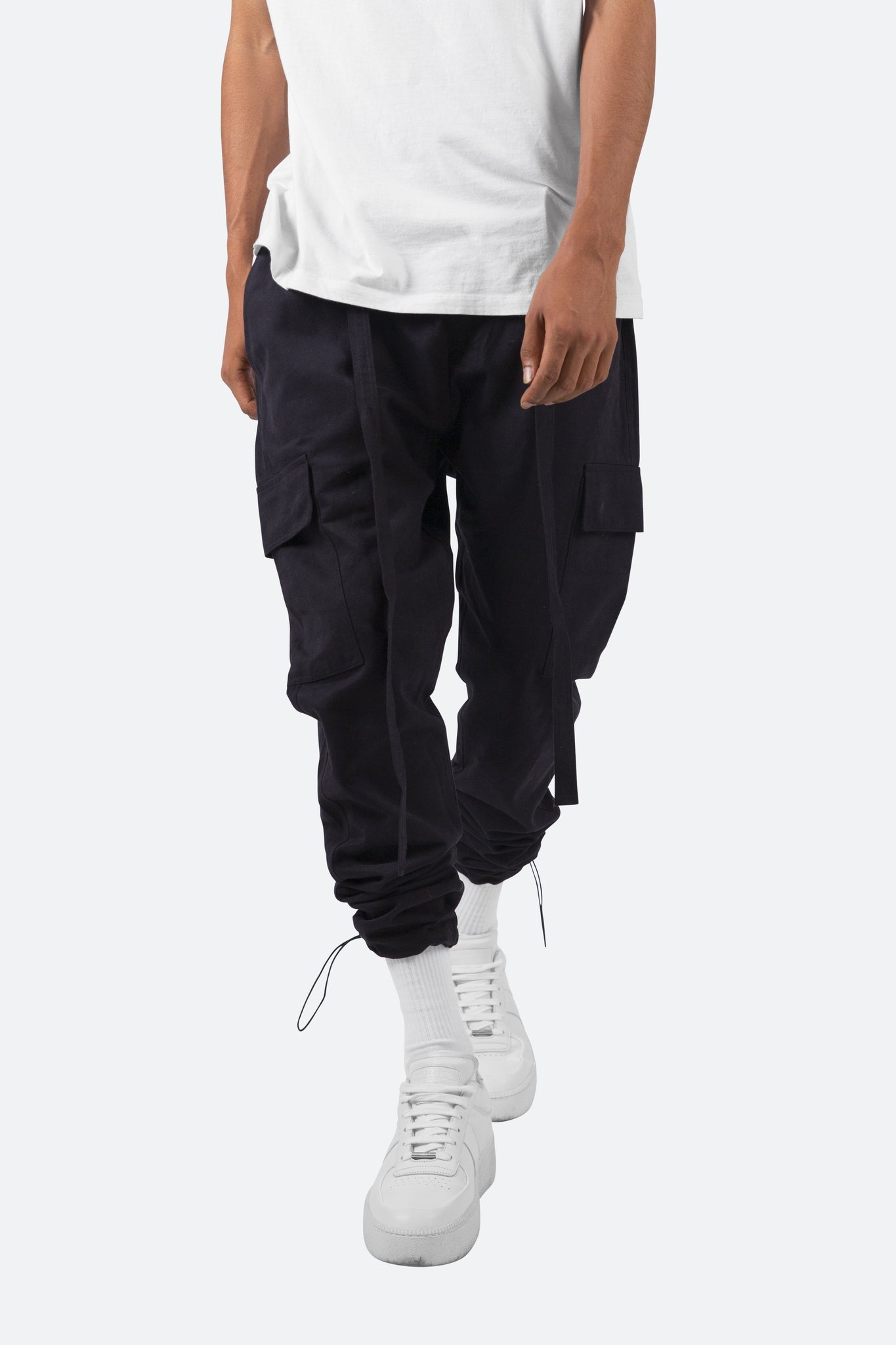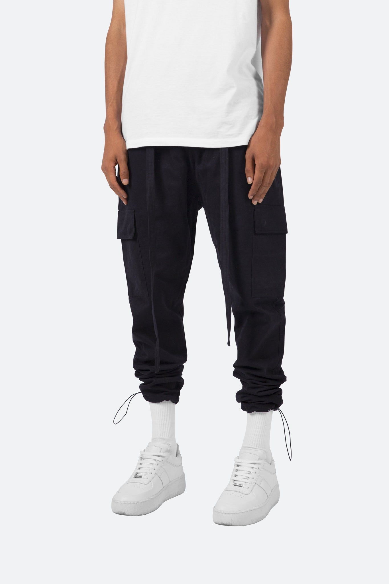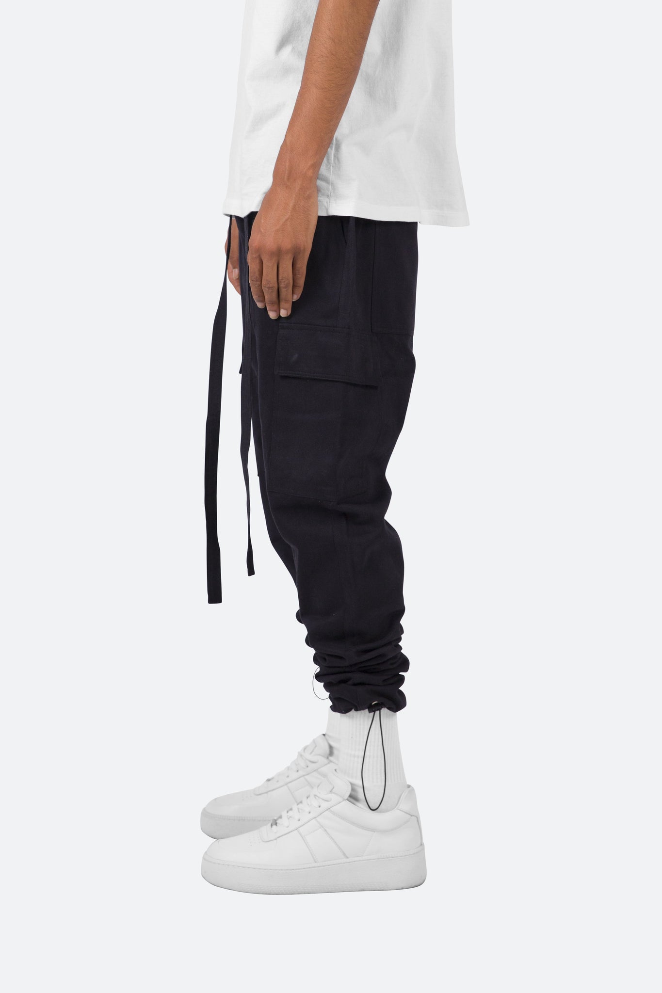 the Cargo Lounge Pants are designed with a baggy, relaxed fit throughout, featuring an elastic waistband, built in belt constructed of self-fabric, cargo pockets at side seam, and finished with elastic cord locks at the leg opening.
