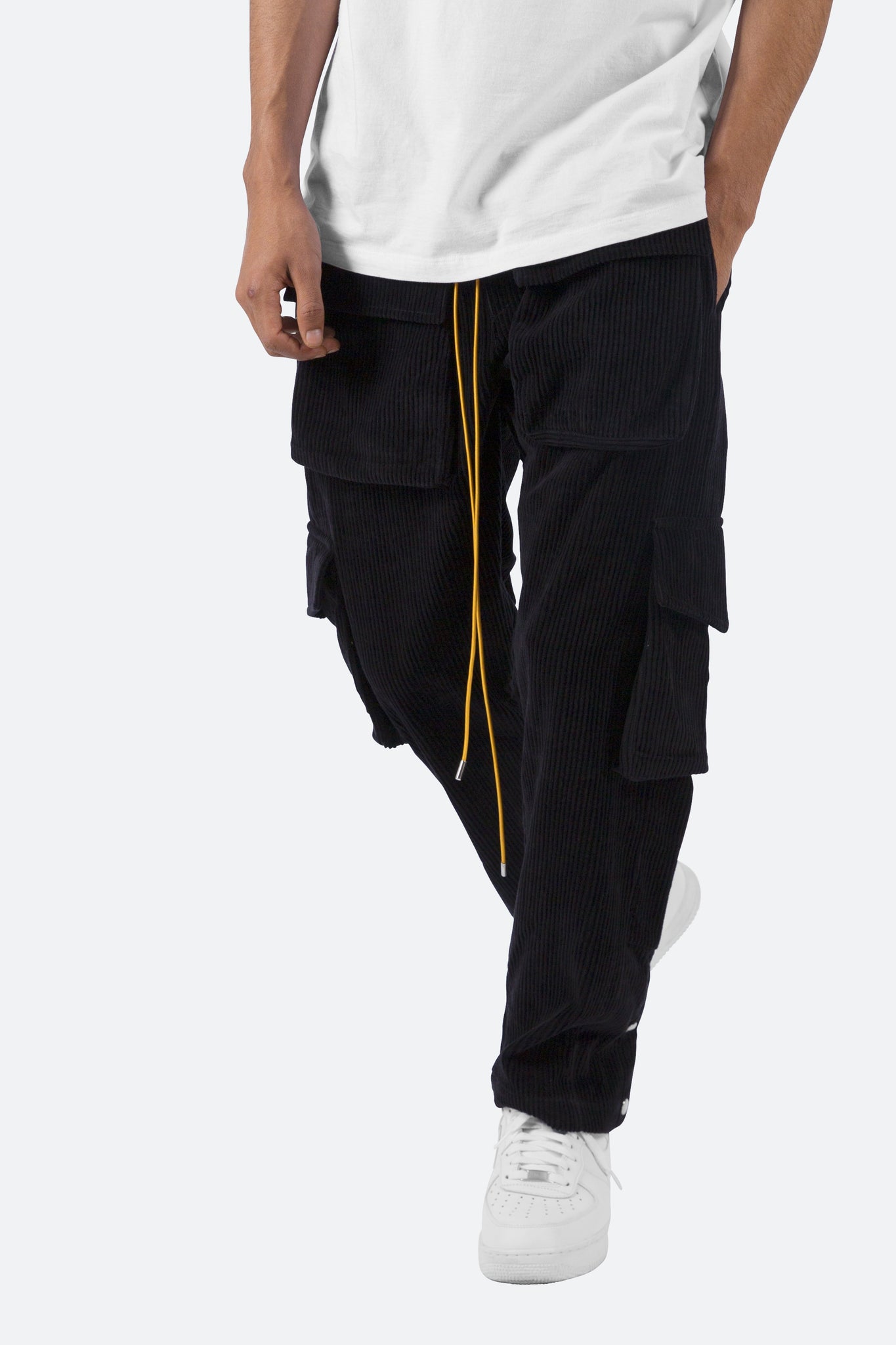 the Corduroy Snap II Cargo Pants are designed with an updated, relaxed, fit throughout, cargo pockets located on the front thigh and side seam, an elastic waistband with elastic drawcord, and finished off with a snap enclosure at the outseam.