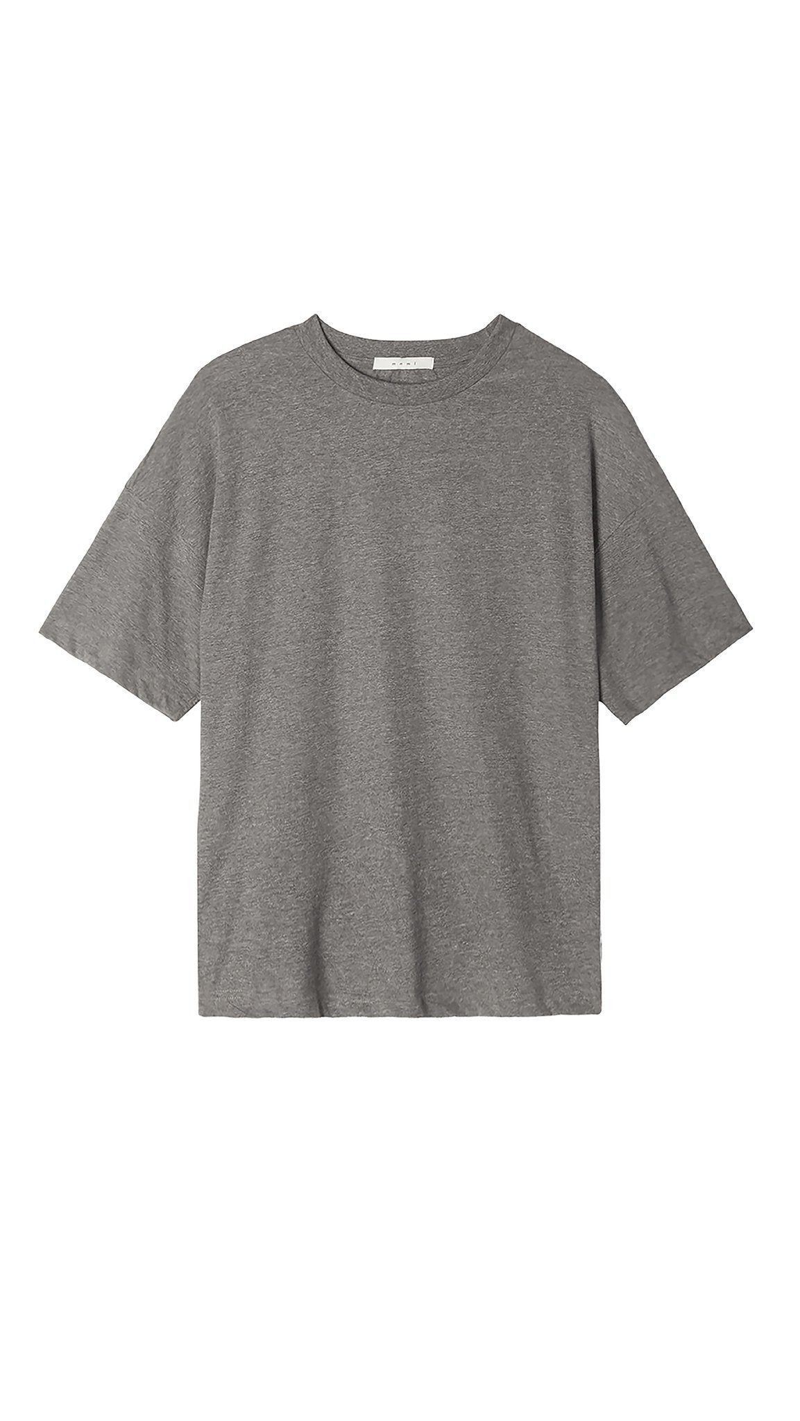 this tee features a flat hem line and an extended shoulder seam for an oversized, dropped shoulder fit.